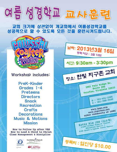 여름 성경학교 교사훈련이 3월 16일(토) 오전 9시30분부터 오후 3시30분까지 한빛지구촌교회(담임 장세규 목사)에서 진행된다. KAPC 워싱톤노회 제 11회 정기노회