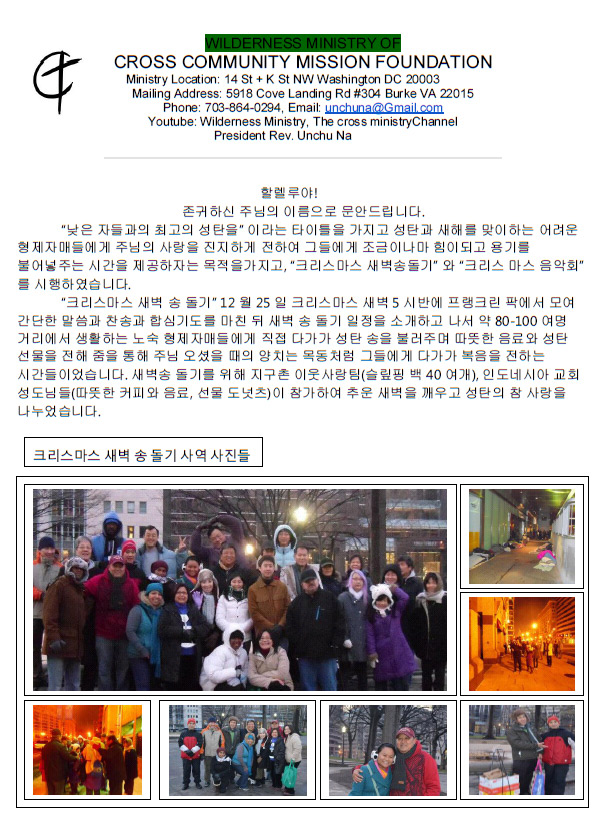 "낮은 자들과의 최고의 성탄을"이라는 타이틀을 가지고 성탄과 새해를 맞이하는 어려운 형제자매들에게 주님의 사랑을 진지하게 전하여 그들에게 조금이나마 힘이되고