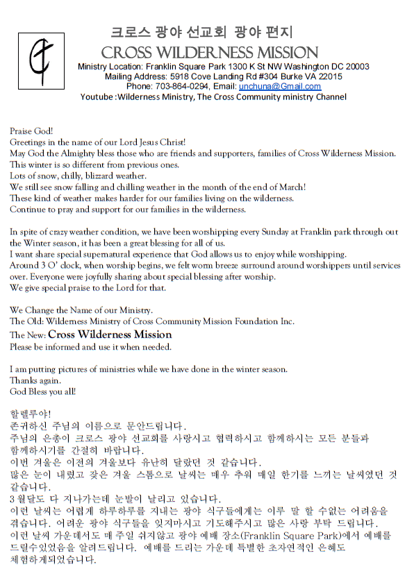 크로스 광야 선교회 광야 편지
