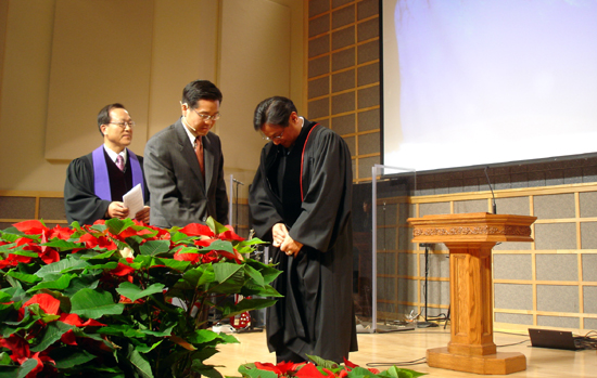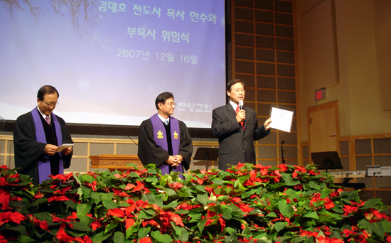 뉴저지 찬양교회(담임 허봉기 목사) 김대호 전도사 목사 안수 및 부목사 위임식이 16일 오전 9시 45분 예배에서 진행됐다.