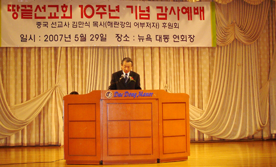 '해란강의 어부' 저자인 중국선교사 김만식 선교사 후원회 및 땅끝선교회(회장 황진배 장로, 뉴욕한인연합교회) 10주년 기념 감사 예배가 5월 29일(화) 대동연회장에서