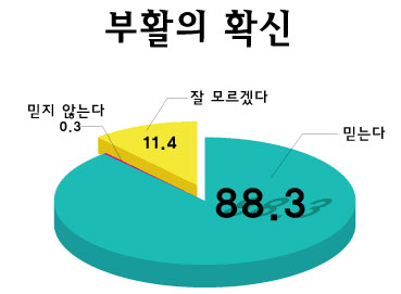 한국의 크리스찬 N세대들은 대체적으로(88.3%) 예수그리스도의 부활에 대해 의심하지 않았다. 하지만 12%에 이르는 크리스찬 N세대들은 아직도 부활에 대 한 믿음이 부족한 것으로 나타났다. 부활을 믿지 않는다는 것은 곧 구원에 …
