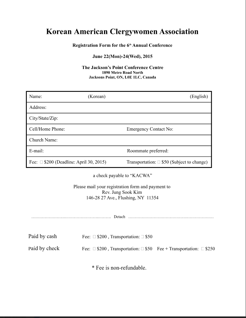 2015년도 컨퍼런스가 아름다운 온타리오 호수가에서 펼쳐집니다. 본 회가 북미주교역자협의회와 함께 연합하여 회원들에게 영적인 도전과 쉼을 공급하기 위하여 정성껏 준비하고 있아오니 첨부파일의 신청서를 참고하시고 4월…