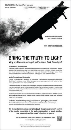 NYT '세월호참사 진실 밝혀라' 박대통령 비판 전면광고